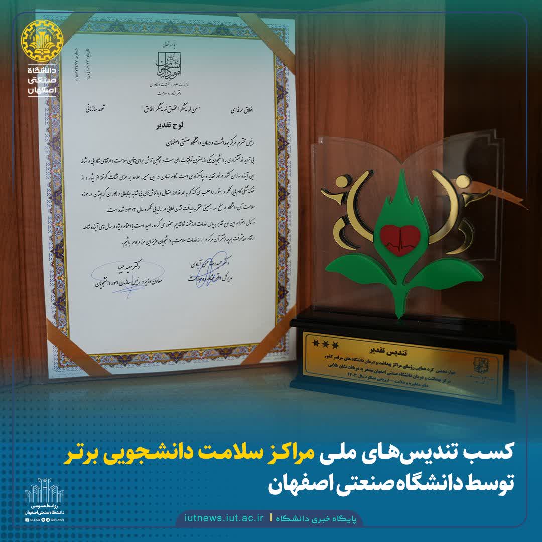 کسب تندیسهای ملی مراکز سلامت دانشجویی برتر توسط دانشگاه صنعتی اصفهان